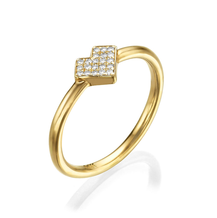 טבעת לב בעיצוב ייחודי של לב המותג עם שיבוץ יהלומים טבעיים.
