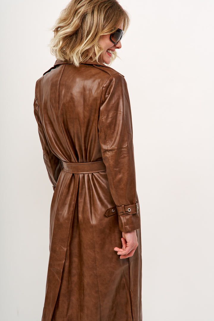 טרנץ' דמוי עור קלאסי בגוון חום שוקולד.