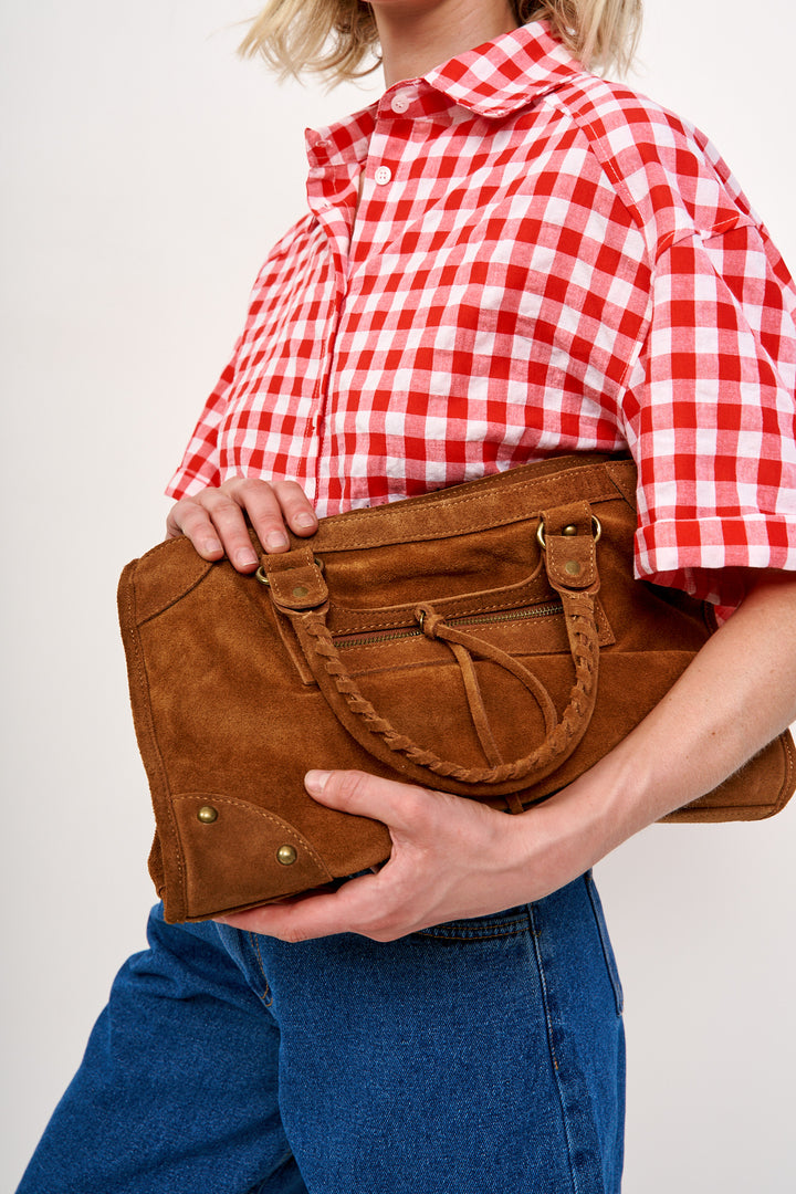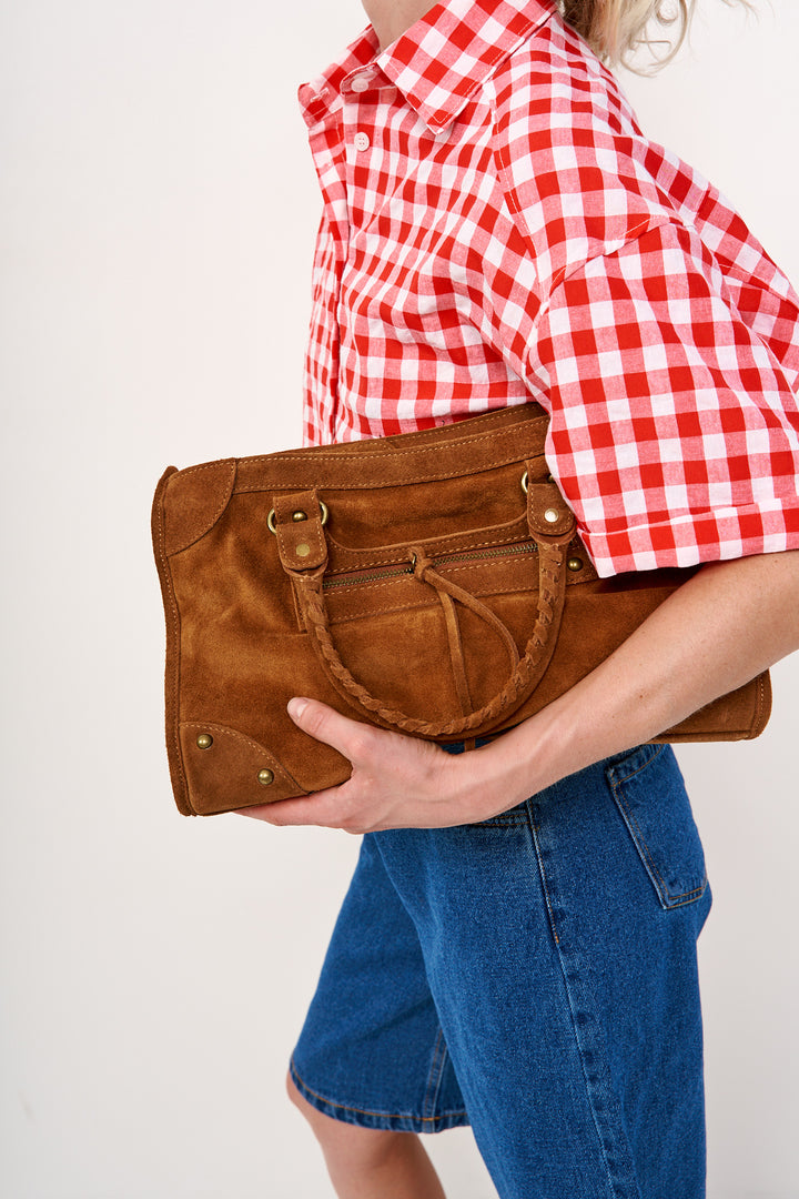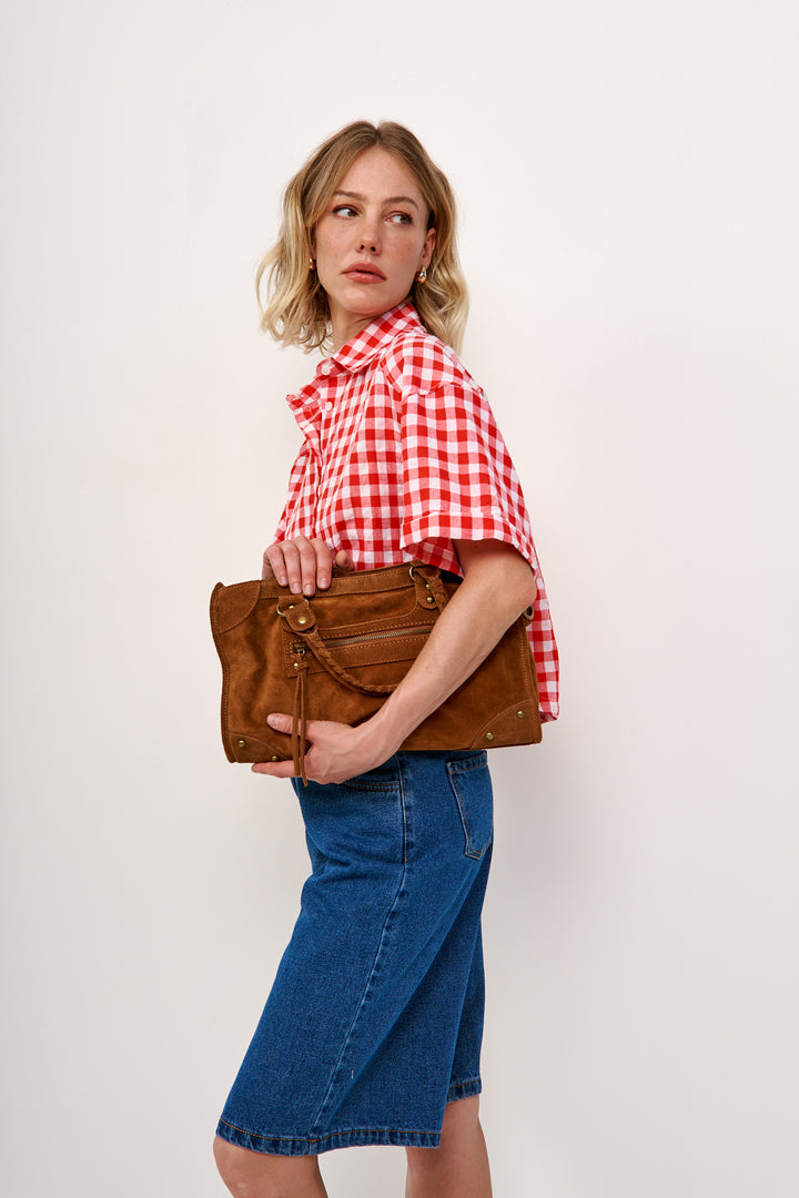 תיק זמש חום שיעניק נגיעה מדויקת של סטייל וייחוד.