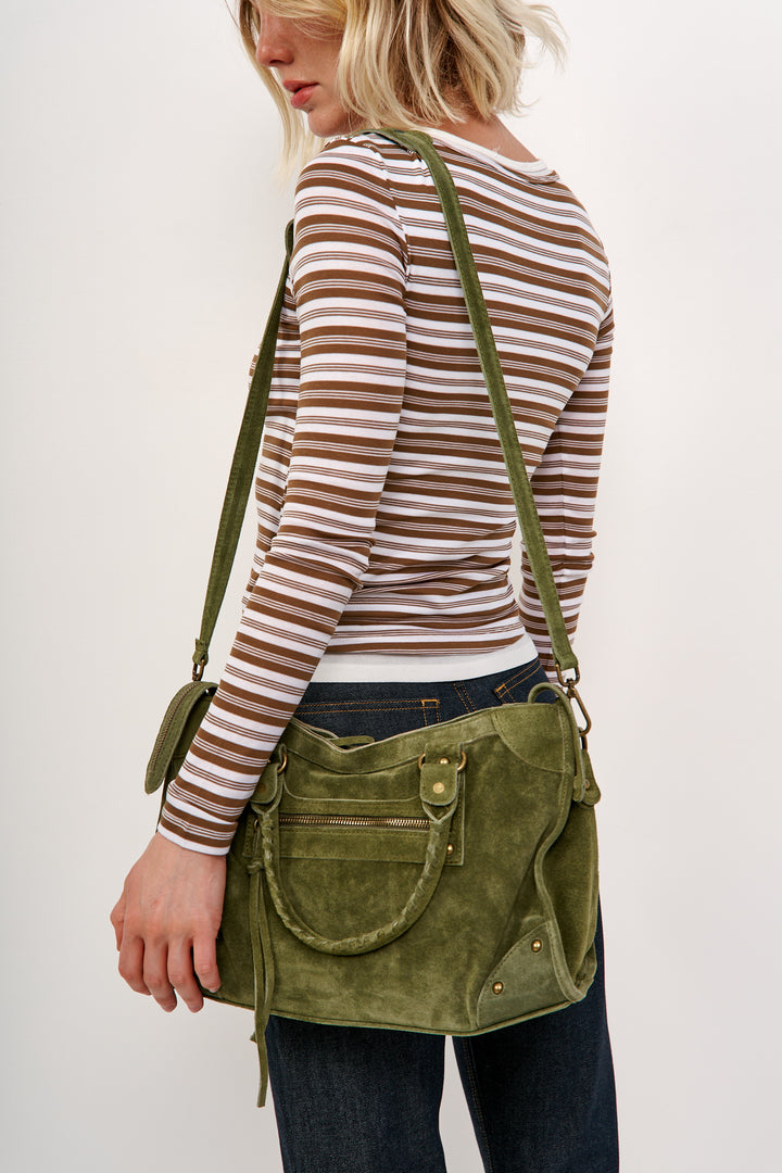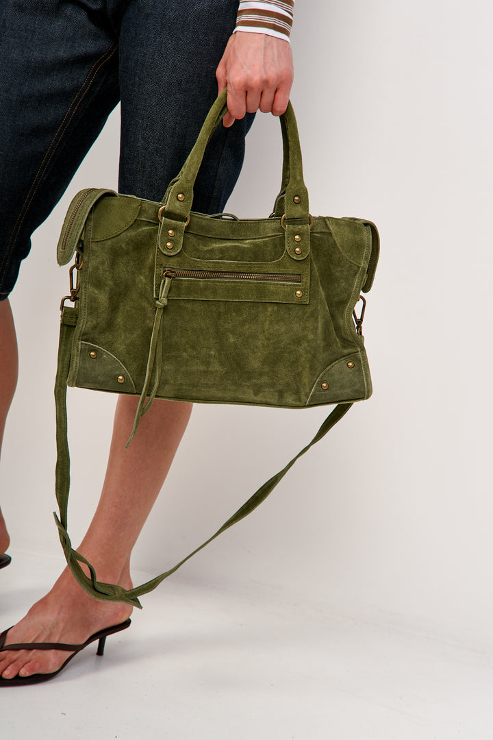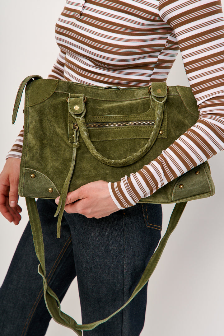 תיק זמש ירוק שיעניק נגיעה מדויקת של סטייל וייחוד.